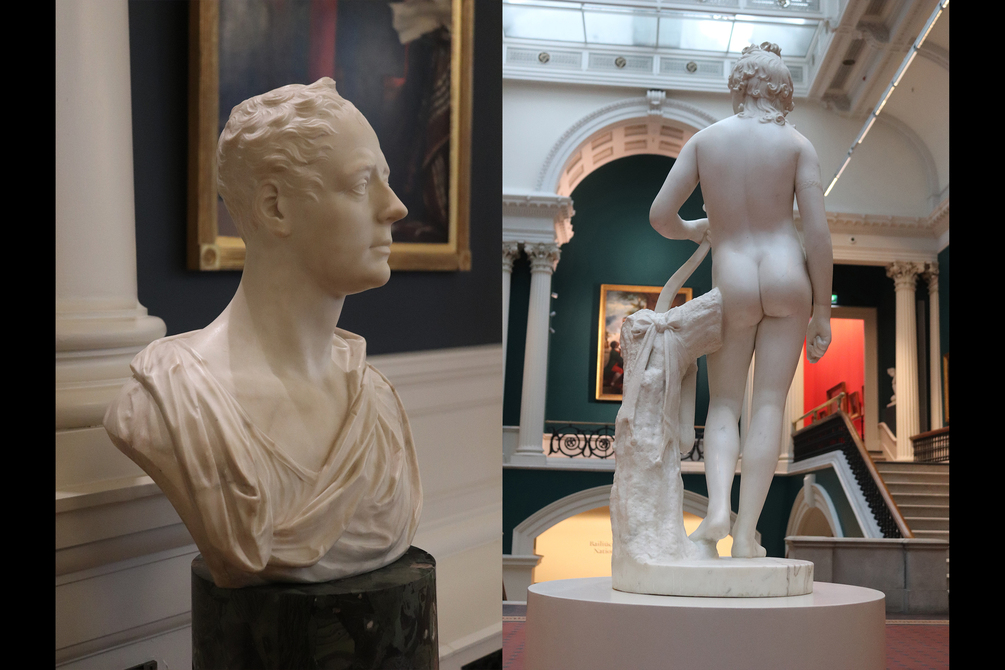 Photo collection of 29 Sculptures ranging from 19th century busts to sculptures of antiquity from inside the Dublin's National Gallery. Textures include marble, bronze, and limewood.